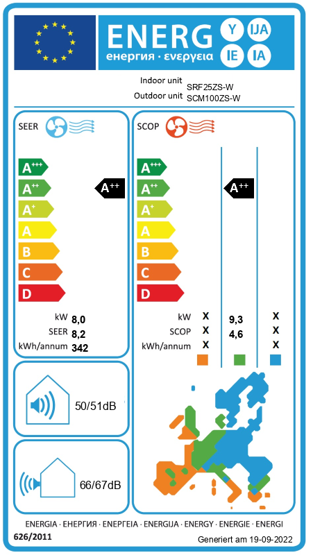 Mitsubishi Heavy SCM100ZS-W 10,0 kW Multi-Split Aussengerät für 4 - 5 Innengeräte | R32 | | Abmessungen Außengerät | mm | H x B x T | 945 x 1043 x 370 | | Absicherung | 25 A | | Anschließbare Innengeräte | 5 | | Einsatzbereich Heizen | -15 bis +24 (°C) | | Einsatzbereich Kühlen | -15 bis +46 (°C) | | Energiebedarf pro Jahr Heizen in KWh. (bezogen auf 1.400 Betriebsstunden) | 2325 | | Energiebedarf pro Jahr Kühlen in KWh. (bezogen auf 350 Betriebsstunden) | 531 | | Energieeffizienz Heizen | | | Energieeffizienz Kühlen | | | Energielabel erstellen | 0 | | Gewicht Außengerät in kg | 92,0 | | Heizleistung (min.~max.) in KW | 10,5 (0,9 - 11,5) | | Kabel Einspeisung min. | 3 x 4,0 mm² | | Kabelverbindung zwischen Innengerät und Außengerät | 4 x 1,5 mm² | | Kältemittel GWP-Wert | R32: 675 | | Kältemittel Höhendifferenz Außengerät-Innengerät max. in Meter | 20 | | Kältemittel Typ | R32 | | Kältemitteleinspritzung | Elektrisches-Expansionsventil im Außengerät | | Kältemittelleitung | max. Leitungslänge Gesamtsystem in Meter | 75 | | Kältemittelleitung Länge zwischen Innen- Außengerät max. in Meter | 25 | | Kältemittelnachfüllmenge zusätzlich je weiteren Meter in Gramm | 20 | | Kältemittelverteiler notwendig | Nein | | Kältemittelvorfüllung für Leitungslänge in Meter | 40 | | Kältetechnischer Anschluss Flüssigkeitsleitung | 5 x 1/4" (6,35 mm) | | Kältetechnischer Anschluss Sauggasleitung | 5 x 3/8" (9,52 mm) | | Kühl-/Heizleistung AG | von 10,0 bis 12,0 kW | | Kühlleistung (min.~max.) in KW | 10,0 (1,7 - 11,5) | | Kühlungsart | Luftkühlung/Luftheizung | | Leistungsaufnahme Heizen (min.~max.) in KW | 2,38 (0,37 - 2,9) | | Leistungsaufnahme Kühlen (min.~max.) in KW | 2,7 (0,48 - 3,65) | | Luftvolumenstrom Aussengerät | Kühlen | Heizen | m³/h | 4500 | | Max. Anschlußleistung Innengeräte in kW | 16,0 KW | | Maximale Leistung Auslegung Innengeräte in kW | 16,0 | | Schalldruckpegel Aussengerät Kühlen/Heizen dB(A) | 54/59 | | Schalldruckpegel min. | 56 | | Schallleistungspegel Aussengerät Kühlen/Heizen dB(A) | 67/72 | | SCOP | Heizen | 4,1 | | SEER | Kühlen | 6,6 | | show_stock | 1 | | Spannungseinspeisung | am Außengerät | | Spannungsversorgung Aussengerät | 220-240 V / 1Ph / 50Hz, N, PE | | Wärmeisolierung, dampfdiffusionsdicht | alle Leitungen | |